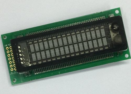 Vacuum Fluorescent Display Module 16 characters 2 lines 16T202DA1E Features: LCD Compatible: drop-in-replacement (same interface and mechanical dimension as LCD module) Readable display: 5*7 dot matrix type Vacuum Fluorescent Display Compact and lightweight: flat panel (VFD) and surface mount technology 5V single power supply Brightness level: adjustable into 4 levels (25%, 50%, 75% and 100%) by software command Support CG-RAM fonts and CG-ROM: 8 user-definable characters